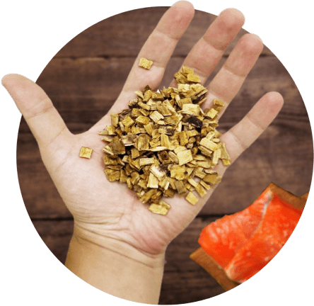 Придаёт копчёностям восхитительный аромат и сладковатый вкус. Рекомендуется для продуктов с нейтральными вкусами: