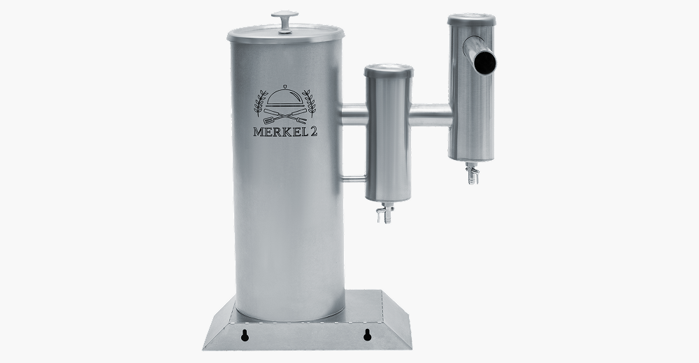 Заключительная ступень очистки - классический сухопарник. Сажа и остаточный конденсат оседают на стенках и дне, а дым проходит финальную стадию охлаждения. Мощный компрессор, оснащённый двумя ступенями регулировки, обеспечивает бесперебойную подачу дыма в коптильную камеру.